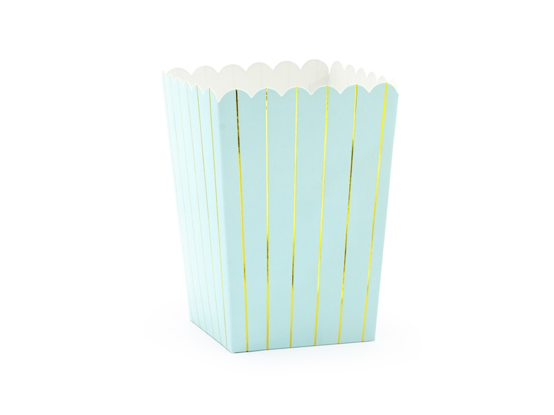 Cubo palomitas azul y oro también para chuches de los invitados de la fiesta.