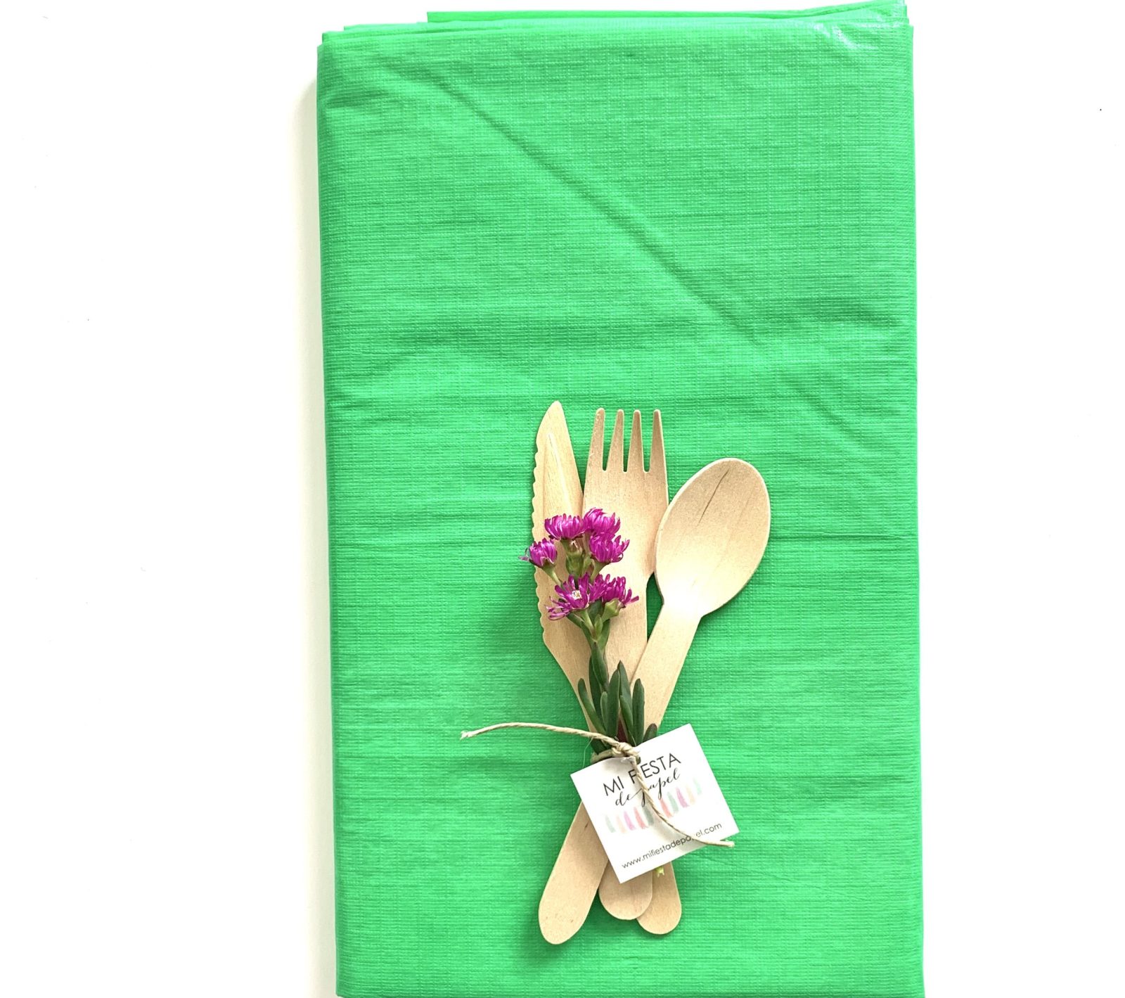 Mantel verde para poner la mesa  de cumpleaños de los niños o una fiesta con amigos.