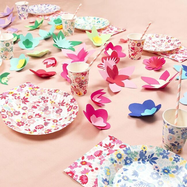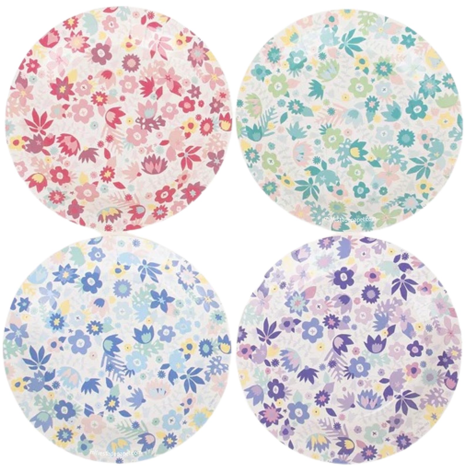 Pack de 8 platos flores mix, mezcla de flores de colores ideales y se adaptará a cualquier ocasión!¿Un babyshower, una Comunión,una fiesta de princesas, una boda, un picnic de primavera?