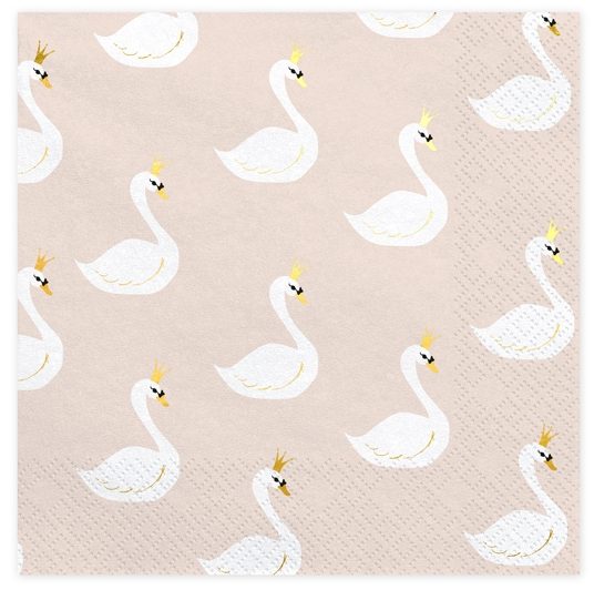 Pack de 20 servilletas triple capa color nude con unos preciosos cisnes blancos con cortonita dorada.
