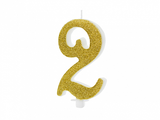Vela número 2 purpurina oro es ideal para poner en la tarta. Sorprende a tus invitados con estos detalles que siempre gusta en una fiesta.